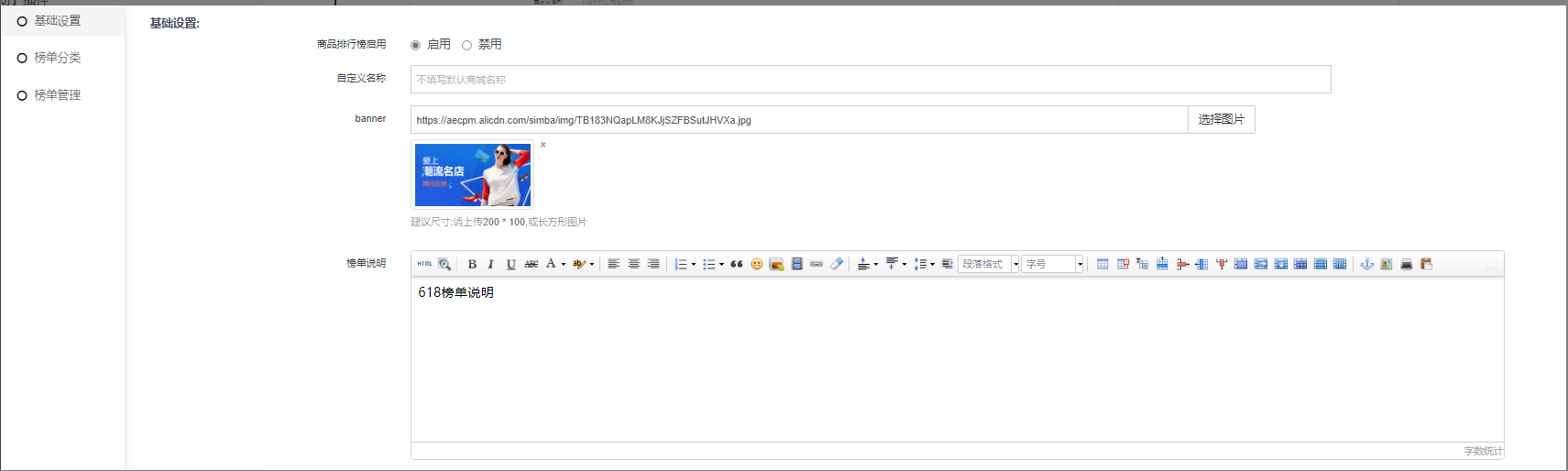 商品排行榜:启用